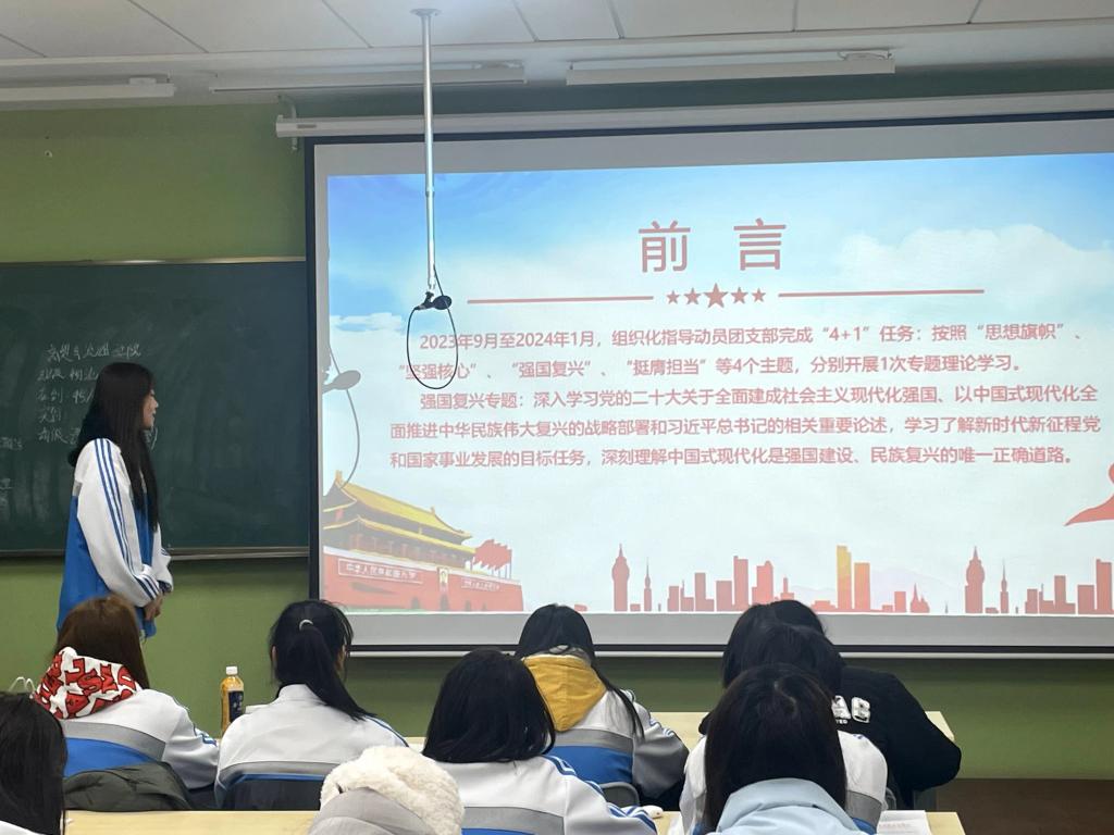 各班团支书紧紧围绕思想旗帜、坚强核心、强国复兴、挺膺担当等专题,面向团员和青年开展团课学习。各团支书讲述了新时代背景下,作为共青团员所肩负的历史使命和社会责任,号召各班团员和青年坚定理想信念、传播正能量、弘扬主旋律、积极参与社会实践,大力弘扬“奉献、友爱、互助、进步”的志愿精神,通过服务社会和服务群众,实现个人价值与社会价值的统一。