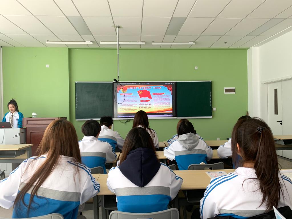 首先各团支部书记汇报了本支部开展团员和青年主题教育情况,特别是对“思想旗帜”“坚强核心”“强国复兴”“挺膺担当”等四个专题的开展情况和学习成果进行具体讲述。紧接着支部团员青年依次进行发言,对照先进党员团员事迹,思考努力方向;对照团员先进性评价标准,查找不足、改进提高。随后开展了团员先进性评价民主评议,评议完成后由各班班主任及上级团组织负责人点评讲话。与会教师主要从主要从具体学习计划、创新组织形式、提高协调能力三个方面对各支部未来工作提出了建议,指出本次会议准备充分、程序规范,希望支部的团员和青年们要继续深入学习贯彻习近平新时代中国特色社会主义思想,全面系统掌握习近平新时代中国特色社会主义思想的基本观点、科学体系,坚持学思用贯通、知信行统一,不断巩固拓展支部团员和青年主题教育成效。会议最后,团支部书记的带领下,全体团员和青年面向团旗,举起右拳,重温入团誓词。