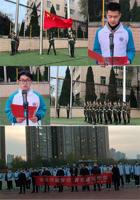 早上7点整,在激昂的旋律中,国旗护卫队迈着坚定的步伐来到国旗下,五星红旗伴随着《义勇军进行曲》徐徐上升,全体师生面向国旗行注目礼。升旗仪式结束后,学生代表新能源2102班王卓和汽检2202班李梓睿分别作了题为《奋斗成就梦想,青春谱写华章》和《把梦想融入奋斗,把青春献给祖国》的主题演讲,他们结合自身实际,鼓励同学们珍惜稍纵即逝的青春,为了始终不渝的理想,让青春在奋斗中闪光,让梦想在奋斗中实现。