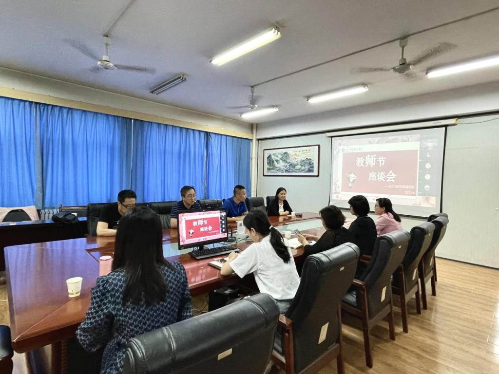 座谈会上,资深教师代表积极分享教育心得体会、交流教育教学经验,新进教师代表则表示在以后的日子一定会坚守立德树人的初心,担起为党育人、为国育才的使命,为教育事业出一份力量。王化冰院长呼吁教职工传承化纺服学院的优良传统和“黄大年”精神,弘扬人民教师的高尚情操和良好的师德师风,大力推进职业教育高水平发展。党总支书记贾格维对学院全体教职工表达了敬意与祝福,并希望每位老师在今后的教育生涯中继续坚守人民教师的责任与担当,齐心协力,在各自的岗位上发光发热,为学院未来的发展尽职尽责,努力做人民满意的“四有好老师”。