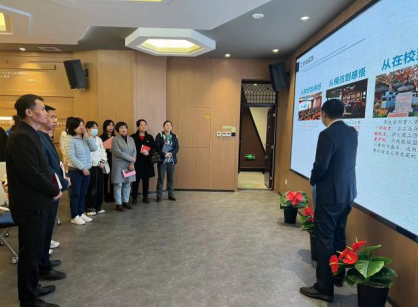 揭牌仪式之后,在马克思主义学院实训中心主任陈杜昊的带领下,双方一同参观了马院思政实训基地“学马研习·践创空间”,切身感受了5G教学模式、VR与3D红色资源,并讲述了一堂生动的二十大精神微党课。随后,在校史馆前合影留念。