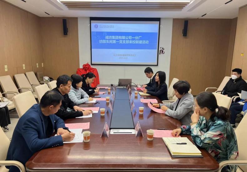 3月23日,咸纺集团一分厂纺部车间第一党支部、化纺服学院教师党支部、马克思主义学院党支部在我校共同开展了联建活动,就校企党支部共建工作进行座谈交流。会议由化纺服学院党支部书记刘迪主持,咸纺集团一分厂党总支书记、厂长杨雯静,总支委员、副厂长金波、刘军、纺部车间第一党支部书记、车间主任张栓平,总支委员、车间副主任张小格、徐亚鹏,梦桃小组第十四任组长王丹,化纺服学院总支书记贾格维,支部书记刘迪,马克思主义学院实训中心主任陈杜昊,支部委员代表、学生代表等参加座谈。
