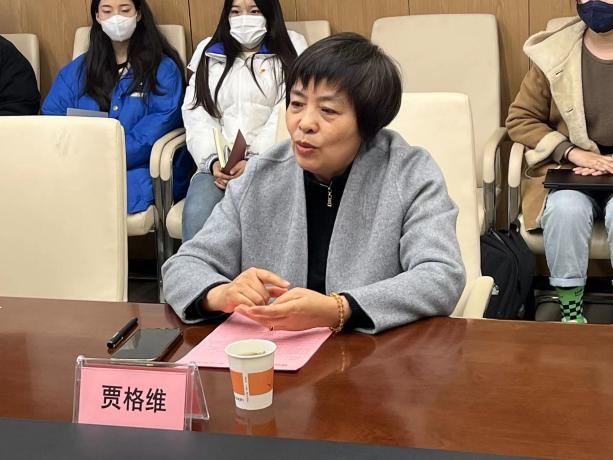 化纺服学院总支书记贾格维对咸纺集团一分厂领导来校交流表示热烈欢迎,在观看完学校的宣传片后,贾格维书记从学院学科概况、师资力量、职教本科等方面介绍了学院发展情况,同时介绍了化纺服学院党总支在师德师风、课程思政以及全国黄大年团队建设等方面取得的成绩和促进省级双带头人工作室方面做的工作,也感谢咸阳集团对我们的支持。化纺服学院教师党支部书记刘迪介绍了党支部近年来取得的成绩,阐述了在工匠基地建设、育人培养、团队建设等方面所做的探索和努力。