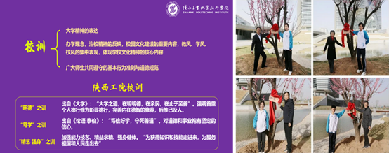 铭记校训,身体力行释放教师风范。秉承“明德”之训,砥砺品质,将教师自身明德至善作为开展教育教学的底气。开展师德师风专题教育,引导教师坚定理想信念、厚植爱国情怀、涵养高尚师德,争做“四有”好老师,为党育人、为国育才。积极响应学校“青绿经开 情满工院”生态文明实践活动倡议,组织教职工参加经开校区公益植树,争当爱岗敬业的践行者,争做立德树人的奋斗者。