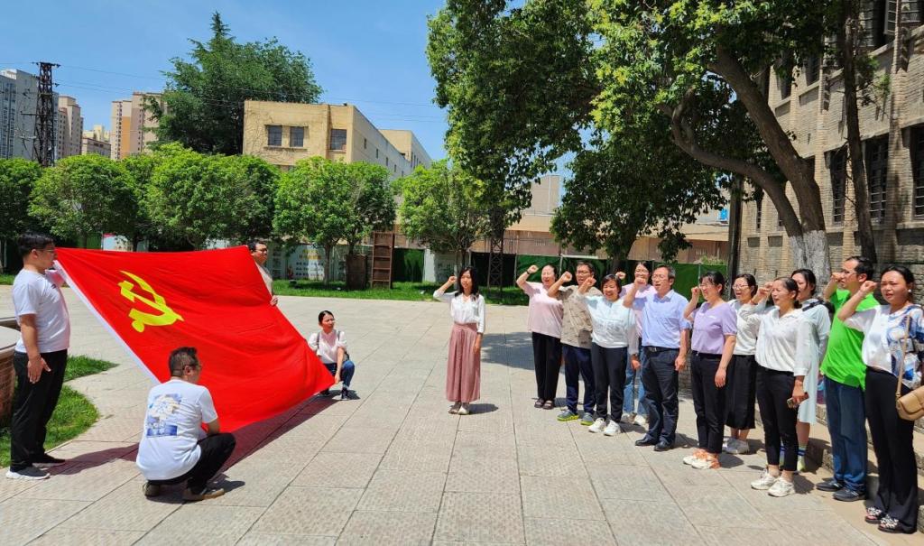 在长乐塬抗战工业遗址,大家走进申新纱厂的窑洞工厂和薄壳厂房,通过讲解员的解说、参照实物、照片以及文献,充分了解和感受了申新纱厂的工人在那个战火纷飞的年代,仍坚持生产支持前线的艰难历程,见证了民族企业实业救国的历史。全体党员深刻体会到了中国人民顽强不屈的抗战精神、“努力干、一起干”的工合精神,大家纷纷表示要铭记历史教训,传承红色基因,弘扬革命精神,为实现新时代的中国梦努力奋斗。随后,在长乐塬抗战工业遗址正门前,全体教师党员重温入党誓词,怀着敬仰之情,用洪亮的声音向党旗做出最为庄严的承诺。