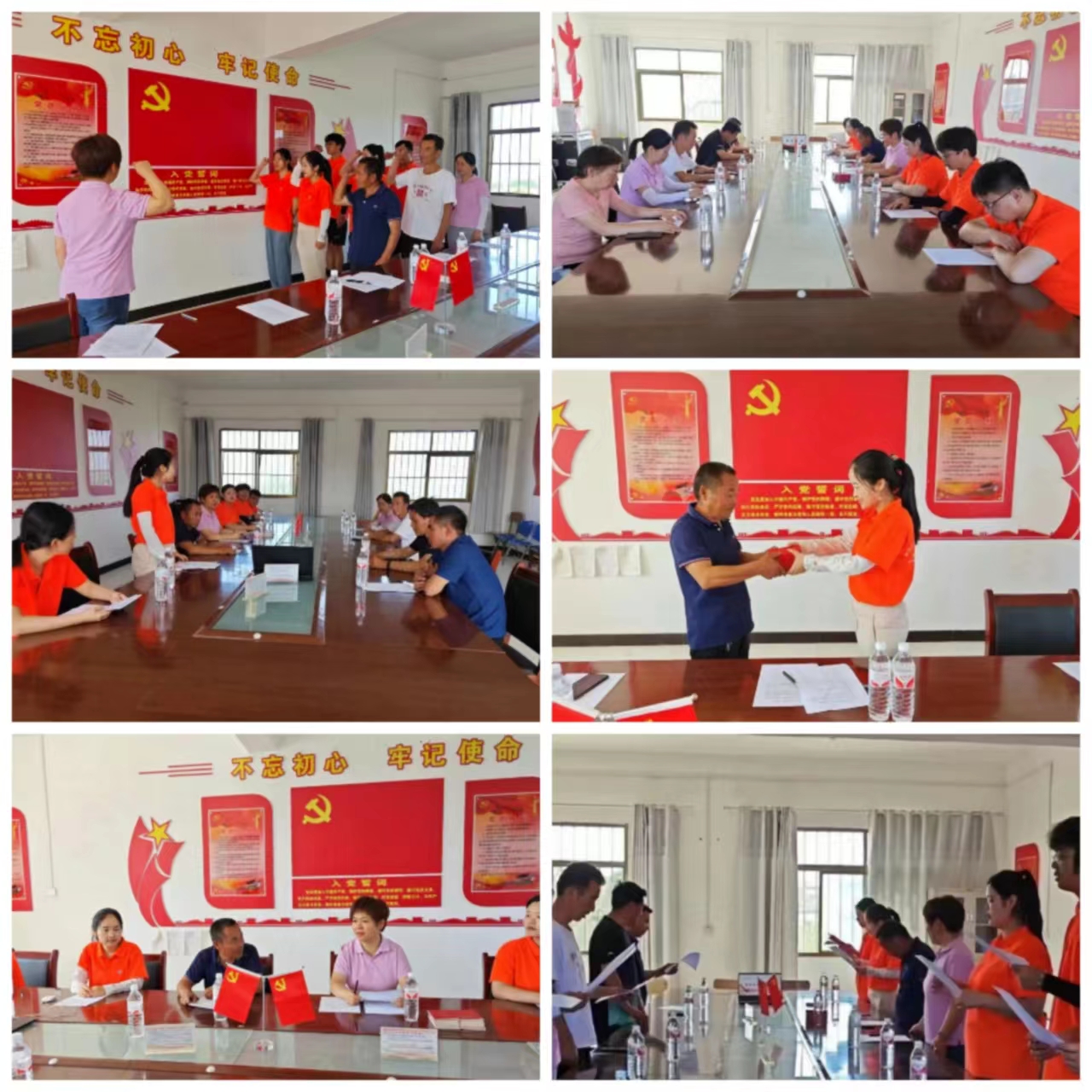 重温入党誓词,坚定理想信念。张咀村驻村第一书记仇海红带领全体党员,面向党旗,举起右手,重温入党誓词,以铮铮誓言表达对党的忠诚。