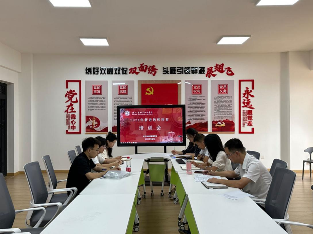 为帮助新进教师尽快熟悉教育教学岗位工作,进一步明确岗位要求,9月4日,化工与纺织服装学院在崇文楼806召开了2024年新进教师岗前培训会。化纺服学院党总支书记杨修国、院长刘迪、实训室主任梁博及3位新进教师参加了会议,会议由教学办主任赵伟主持。