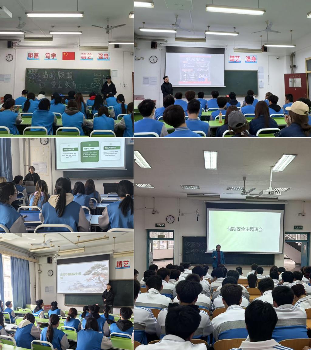 本次主题班会由各班班主任主持,针对清明节假期特点,全面且深入地讲解了一系列安全注意事项。在学生离校管理方面,老师们着重强调,凡是清明节期间离校的学生,必须严格履行请假手续,确保学校能够精准掌握学生的去向与动态,为学生安全保驾护航;关于外出活动安全,严禁学生私自涉险外出,如有外出计划,一律要提前办理请假手续。此外班主任提醒同学们,外出时务必选择安全的目的地与出行方式,避免前往危险区域,时刻将个人安全放在首位;在校园行为规范与个人自律层面,严禁学生在假期出现酗酒、打架以及夜不归宿等不良行为。班主任通过实际案例,向同学们阐述了此类行为可能带来的严重后果,引导学生们树立正确的假期生活观念,维护自身与他人的安全及校园的和谐稳定。