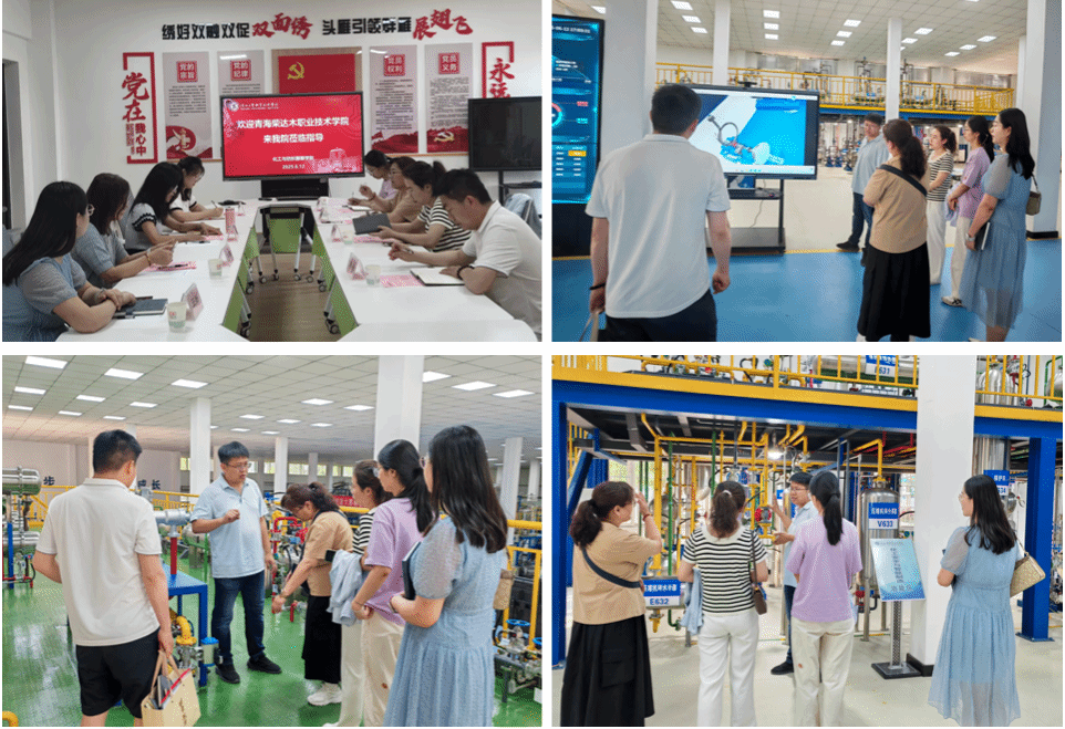 会议伊始观看了学校宣传片,接着刘迪院长从专业设置、师资队伍、党建工作等全方面介绍了学院情况,交流团的孙秀华主任详细介绍了青海柴达木职业技术学院化学工程系的各项情况。随后,交流团与学院教师双方围绕专业建设、人才培养模式、师资队伍建设、产教融合、实训基地建设以及党建与思想政治工作等方面展开了深入交流。在王妍博士的陪同下交流团前往化工技术训练中心参观,设备技术人员为交流团详细介绍实训中心的设备建设和使用情况,并对交流团的疑问做出了解答。