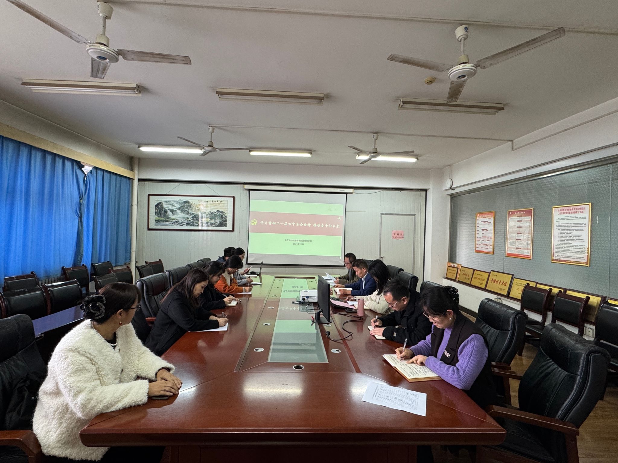 会上,支部副书记程序带领党员学习《中国共产党第二十届中央委员会第四次全体会议公报》,重点解读 “十四五” 重大成就、“十五五” 关键定位、“6 个坚持” 原则及 12 项重要部署;随后学习《习近平谈治国理政》第五卷 “朝着建设教育强国目标扎实奋进” 章节,筑牢思想基础。