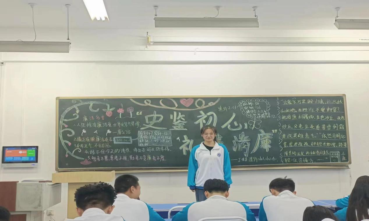 各班按照活动主题绘制黑板报,主持人致开场白,并宣读活动规则,同学们积极参与发言,讲述者依次上台讲述有关廉政的历史典故、古代先贤的廉政思想、古代从政者和革命先辈的清正廉洁故事。交流活动,不仅丰富了廉政文化宣传教育活动的形式和载体,而且也在不知不觉中筑牢了廉洁自律的思想防线。