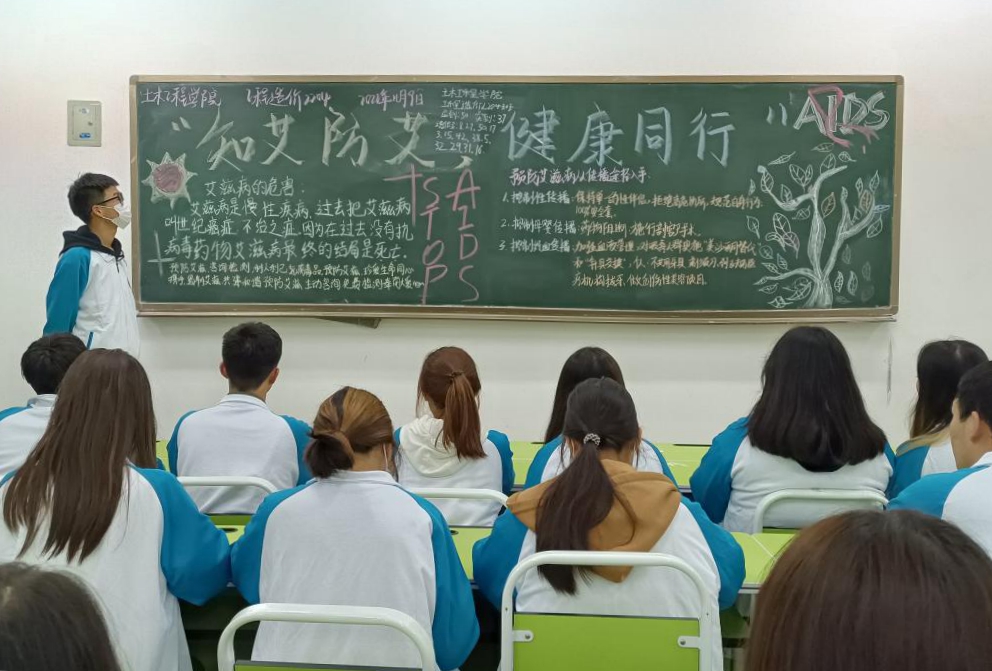 为了提高同学们的抗艾防艾意识,11月9日晚上七点半,土木工程学院组织各班同学在教室开展了"知艾防艾,健康同行”的主题班会。