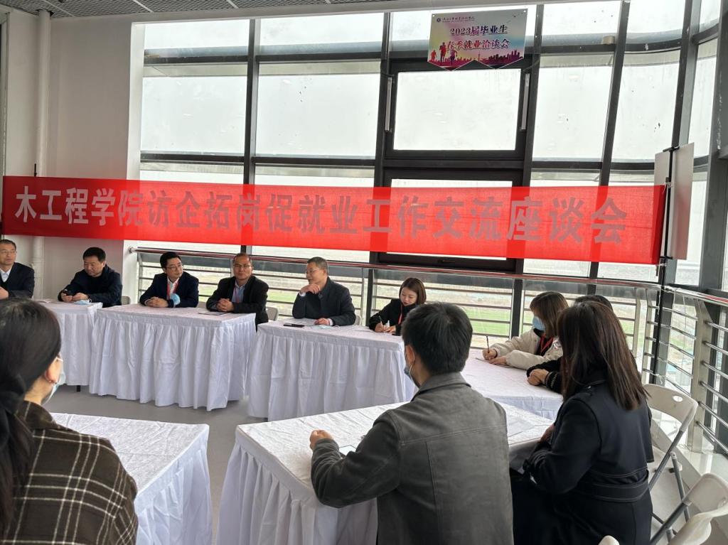 为落实学校访企拓岗促就业工作部署,实现学生充分高质量就业,3月22日,土木工程学院党总支书记张科海、院长杨谦、学工办主任马俊及教师代表赴陕西工院经开校区开展访企拓岗促就业工作交流活动。本次土木学院访企拓岗促就业工作交流会分别有杨凌美畅新材料,西安行者上居装饰,康辉南通新材料科技,广州乐居工程咨询,咸阳金碧辉煌装饰,陕西秦盛匠心建筑装饰,陕西西建路桥等10余家公司参加。