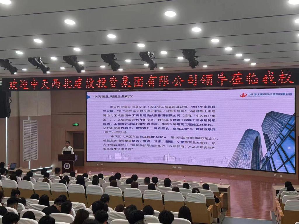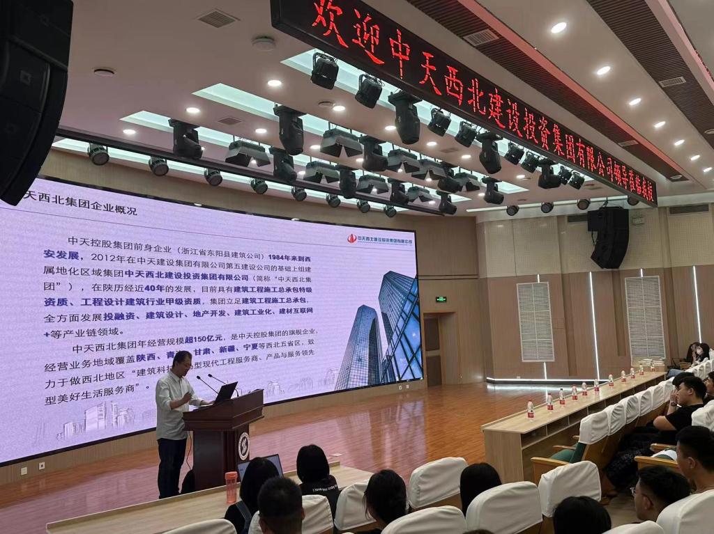 活动开始,晏先勇总监从建筑设计、地产开发、建筑工业化等相关的产业链领域、集团发展、企业荣誉三方面将中天西北集团的企业概况向参会学生做了简要介绍。接着,他结合崇尚创新与超越、强烈使命感和责任感的工程师文化与奋斗者文化,通过图片和视频等不同形式,讲述了中天西北集团的企业文化内涵,深入浅出地解读了企业文化的内涵与企业管理的关系。同时,晏先勇总监将品质、敬责的核心价值观,缔造美好家园的企业使命,成为具有核心竞争能力企业集团的愿景,正道经营、客户至上的经营理念,立志中天、追求卓越的企业精神作为中天西北集团的核心理念体系。活动最后,晏先勇总监从定位职业、确定目标、规划发展三个步骤对当前大学生职业生涯规划进行解读与剖析,帮助大学生树立了正确的就业观念。