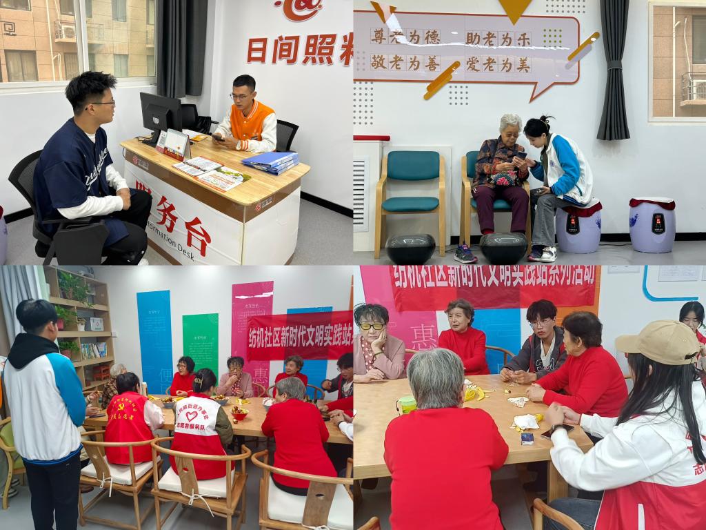 “敬老月”活动期间,在乐游棋牌学生将“为老精神”落于实处,主动关心身边的老年人、自己的长辈,通过通电话、利用周末时间为家中老人做力所能及的事等方法,做出了一些具体的实事,让身边老人感受到节日的温暖及日常的关爱,学生自己也从中领会到了付出的快乐。活动期间,土木学院团总支晨曦志愿部、宣传部学生代表和部门成员分别前往“咸阳青葵到家养老有限公司”“纺机社区日间照料中心”,举办了“爱助夕阳·温暖传递”为主题的为老志愿活动。活动当天,志愿者们前往社区内的老年活动中心进行走访,与老年人亲切交流,倾听他们的心声;志愿者们帮助老年人打扫卫生、搬椅子、剥水果等,为他们解决一些生活上的问题,从日常生活中的小事、细节出发,让这些老年群体感受到来自各方的关心与温暖;志愿者们与老人们深入互动,聊天、陪伴,让老人们感受到被关心和珍视。通过开展精彩、丰富的文娱表演活动,以唱歌、舞蹈、朗诵、相声等文艺形式,展现青年一代的朝气与活力。志愿者们陪老人打麻将、下象棋,增强老年人的社交活动能力,为他们带去了欢声笑语。此外,志愿者准备了一些水果、坚果等爱心食品,为老人们亲手献上茶水,为老人们送去秋日的温暖与祝福。