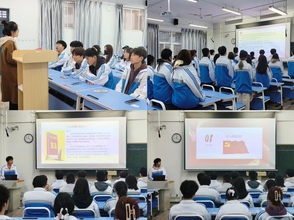 12月4日是我国第十个国家宪法日,乐游棋牌师生在线观看了“宪法晨读”网络直播,一起跟读宪法相关内容,学习宪法知识,大力弘扬宪法精神,使大家“知‘宪’于心,守‘法’于行”。12月6日下午,乐游棋牌开展了“弘扬宪法精神”主题团课。首先,教师团干部王珂为同学们进行《宪法》解读,她号召同学们:“宪法的根基,在于人民发自内心的拥护;宪法的伟力,在于人民出自真诚的信仰。作为中国人,应发自内心的拥护,自觉尊崇宪法、学习宪法、维护宪法,让宪法成为我们共同的信仰”。随后,团学干部庹旭辉和入团积极分子周博伦为大家详细讲解了宪法的概念、构成以及发展历史等,带领同学们朗读宪法相关内容,用身边事例解读法律权威,强调遵纪守法的重要性,让宪法精神、法治理念扎根校园,有效增强了学生的宪法意识。