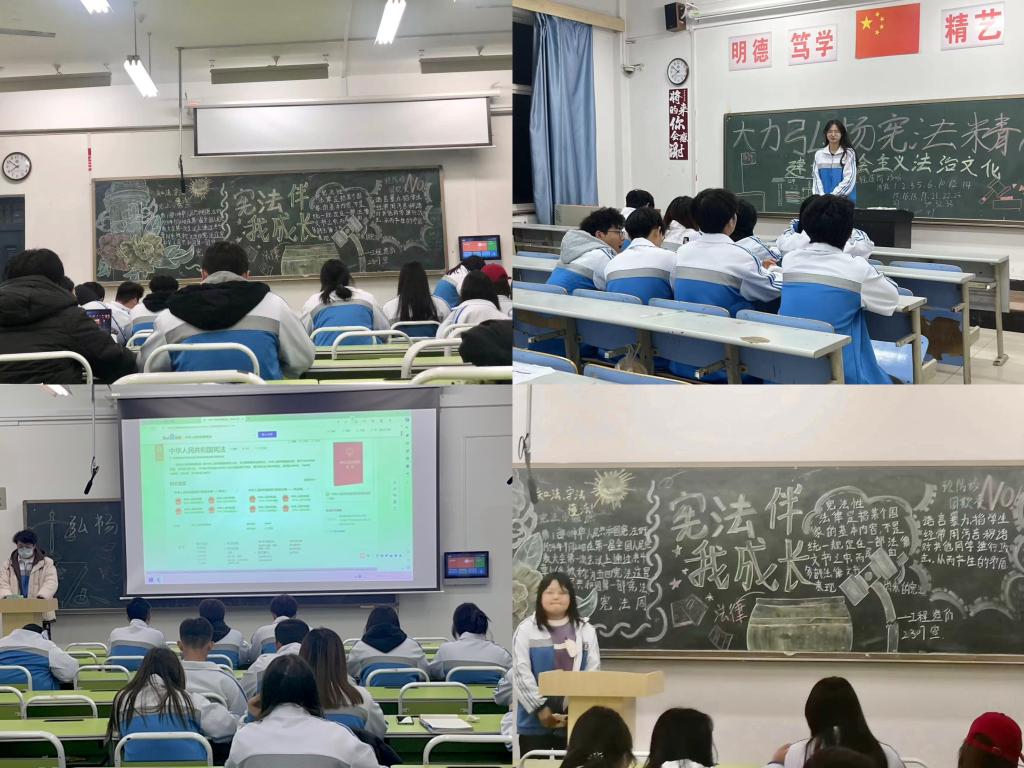 12月6日晚上,各班围绕“大力弘扬宪法精神”开展了宪法主题班会。通过面对面讲解、阅读宣传资料、观看视频等形式进行宪法学习,普及宪法知识,引导学生自觉学习宪法,遵守法律法规,做学法、懂法、守法、用法的合格公民。“知‘宪’于心,守‘法’于行”,不仅仅是一句口号。我们要不断增强责任担当,提高履职本领,把尊崇宪法、维护宪法落实到日常,落实到末端,落实到细节,真正成为社会主义法治的忠实崇尚者、自觉遵守者、坚定捍卫者!