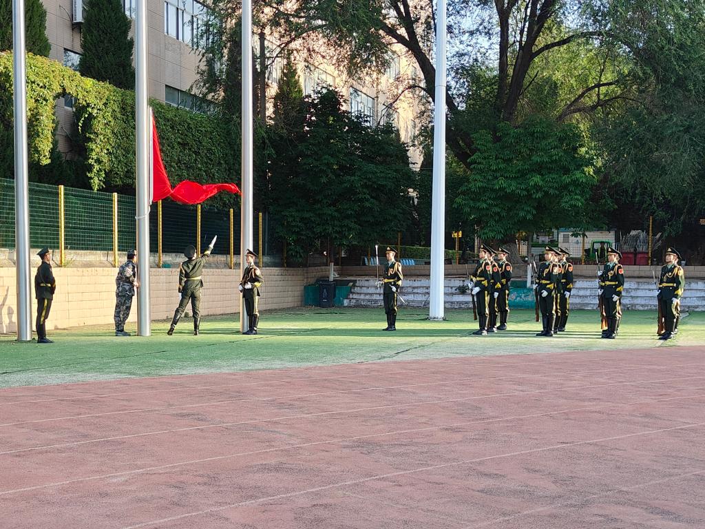 7时整,升旗仪式正式开始,国旗护卫队队员迈着整齐的步伐,护送鲜艳的五星红旗走向升旗台,伴随着义勇军进行曲,五星红旗冉冉升起,全体师生昂首肃立,行注目礼。
