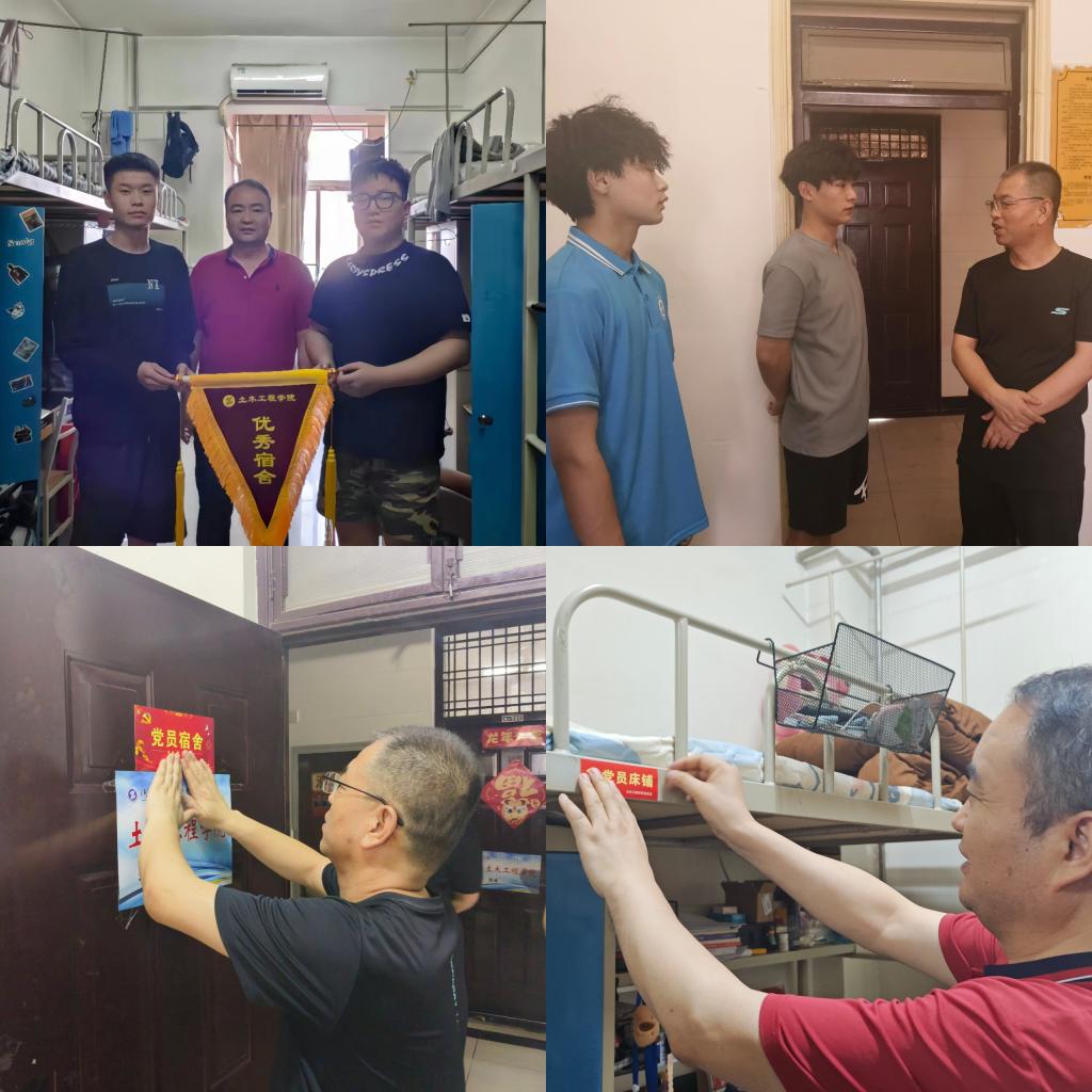 为进一步加强学生的宿舍卫生建设,营造积极向上、团结友爱的宿舍生活学习环境,持续推进2024年学生公寓“安全卫生月”活动安排,6月17日下午,土木学院开展优秀宿舍授旗暨党员宿舍挂牌活动。土木学院党总支书记卢文澈和学工办主任马俊带队,学工办全体辅导员以及部分班主任参加了此次活动。