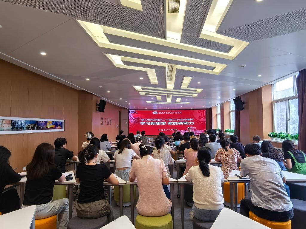 活动包括专题学习和集中研讨两个环节。专题学习环节,张金英和陈杜昊两位老师分别以《百年局中国策——以新质生产力推动高质量发展》和《新征程的“取经路”中国式现代化》为题进行领学。张金英老师从新质生产力在《决定》中的重要地位、从“两个大局”看新质生产力、深刻理解新质生产力的丰富内涵和核心要义、牢牢把握以新质生产力推动高质量发展的基本要求四个方面阐释了“什么是新质生产力,怎样发展新质生产力”。陈杜昊老师以探寻现代化源头切入,通过比较中西现代化道路的根本差异阐明了全会“进一步全面深化改革、推进中国式现代化”的主题,带领全体与会党员深入学习了党的二十届三中全会精神深邃的思想,引导大家以高度的自觉性把思想和行动统一到党的二十届三中全会精神上来,在日常工作中做到学思践悟、融会贯通。