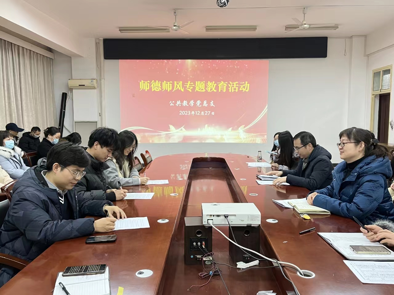 为进一步加强教师思想政治和师德师风建设,使广大教师牢固树立底线意识,提升教师形象,建立具有良好师德修养的教师队伍,12月27日下午,公共课教学部在崇文楼A501举行师德师风承诺书签订仪式,仪式由党总支书记苏宏志主持,公共课教学部全体教师参加了承诺书签订仪式。