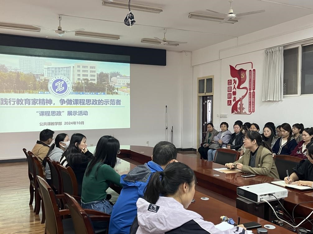 10月23日下午,公共课教学部于A501会议室开展以“践行教育家精神 争做课程思政示范者”课程思政教学展示活动。此次活动旨在深入推进公共课课程思政建设,提升教师课程思政教学能力,为教育教学注入新的活力与内涵。