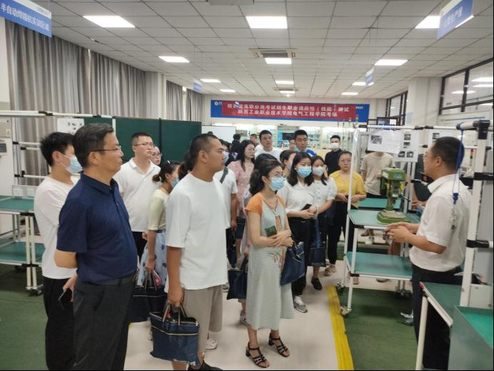 8月10日,贵州工程职业学院校长助理邹小南带队装备制造、建筑、体育等专业40名骨干教师来乐游棋牌交流学习,走进乐游棋牌汽车实训基地、机加工训练中心、土木实训基地、材料成型5G实训基地和欧姆龙实训室。与乐游棋牌教师交流欧姆龙订单班人才培养模式,探讨实训中心建设方案如何制定和实训如何开展等议题。