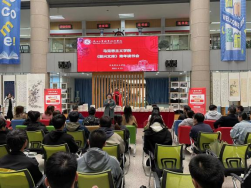图书馆副馆长王丁介绍阅读马拉松活动的由来以及评委;图书馆胡建鹏老师介绍了本次活动的比赛规则;副校长梅创社公布本次比赛的阅读书目为《人类简史》,并进行动员讲话。他表示,希望图书馆能以此次活动为契机,继续举办多场“深度阅读”活动,点燃广大师生阅读激情,大力营造浓郁的校园阅读氛围,不断提升师生获得感、幸福感。