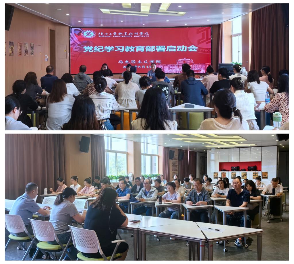 为深入学习贯彻习近平总书记关于党纪学习教育的重要讲话和重要指示精神,根据学校党委党纪学习教育实施方案要求,5月13日下午,马克思主义学院党总支在VR实训中心组织召开了党纪学习教育专题会。会议由总支书记舒蕾主持,全体教师参会。